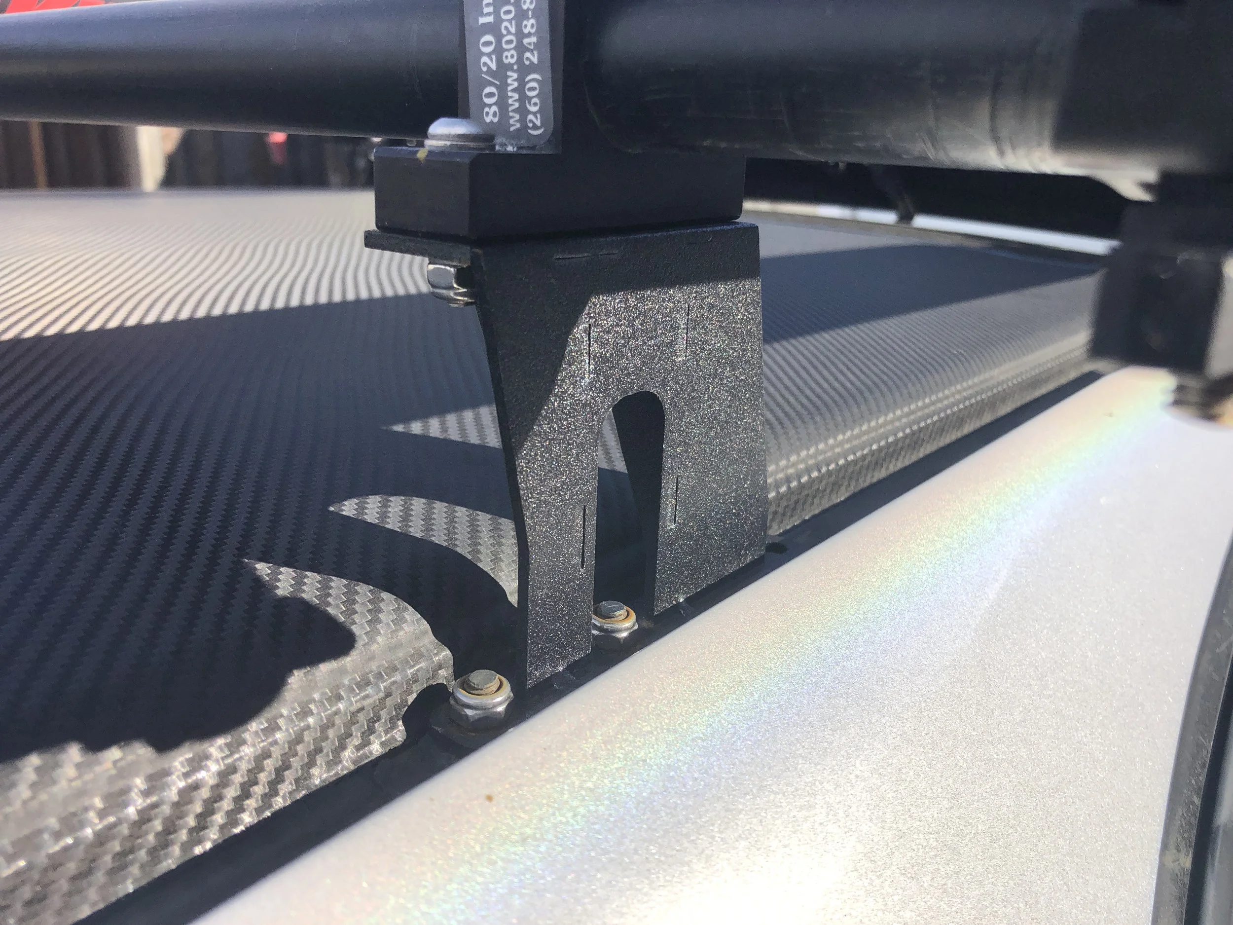 Owners of older cars know - it’s hard to get a good roof rack for a naked roof. Generic solutions like Q-towers sit on your roof and/or hook above your door seals, potentially damaging paint, structure and rubber. Fortunately on this 1996 Honda Accord wagon, studs were available in the drip rails. So a low-profile custom welded tower was fabricated to attach directly to these studs, protecting the brand new wrap with the added advantage of reducing wind noise.